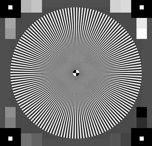 برخلاف تصور عامه مردم که رزولوشن (به معنای ابعاد تصویر، به عنوان مثال 1080P یا 4K) را بیانگر کیفیت تصویر است، اما در عمل اینگونه نیست؛ به عنوان مثال ممکن است دوربینی با تعداد پیکسل 10 مگاپیکسل، رزولوشن (قدرت تفکیک پذیری) کمتری نسبت به دوربینی با تعداد پیکسل 5 مگاپیکسل داشته باشد و جزئیات تصویر دوربین با 5 مگاپیکسل مشخص تر باشد. برای بررسی رزولوشن (به معنای قدرت تفکیک پذیری) دوربین طبق آزمون تعریف شده در استاندارد IEC 62676 و استاندارد ISO 12233 عمل میکنیم؛ این آزمون که به آزمون SFR شناخته میشود، به کمک تست چارت (تست چارت ستاره زیمنس) زیر انجام میشود